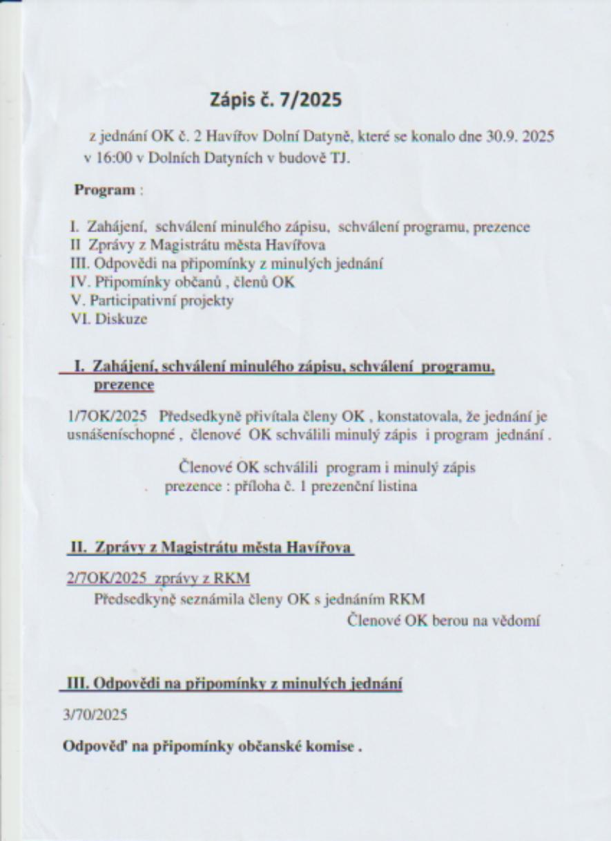 30.9.2025 proběhlo jednání OK č.2 Havířov Dolní Datyně - Zveřejňuji informace z jednání OK DD. Bližší info Vám ráda sdělí předsedkyně: Miroslava OLŠÁKOVÁ