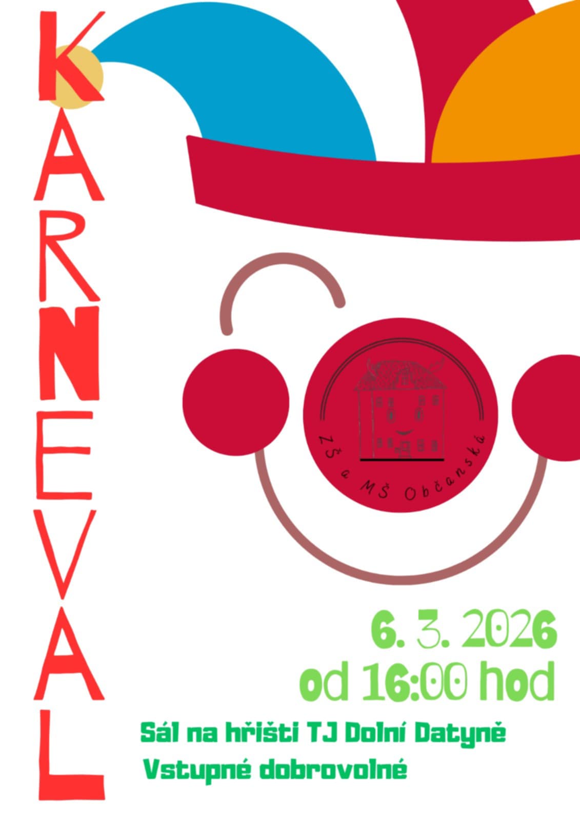 ZŠ a MŠ OBČANSKÁ a KLUB RODIČŮ ZVOU NA KARNEVAL, který se koná 6.3.2026 od 16:00.