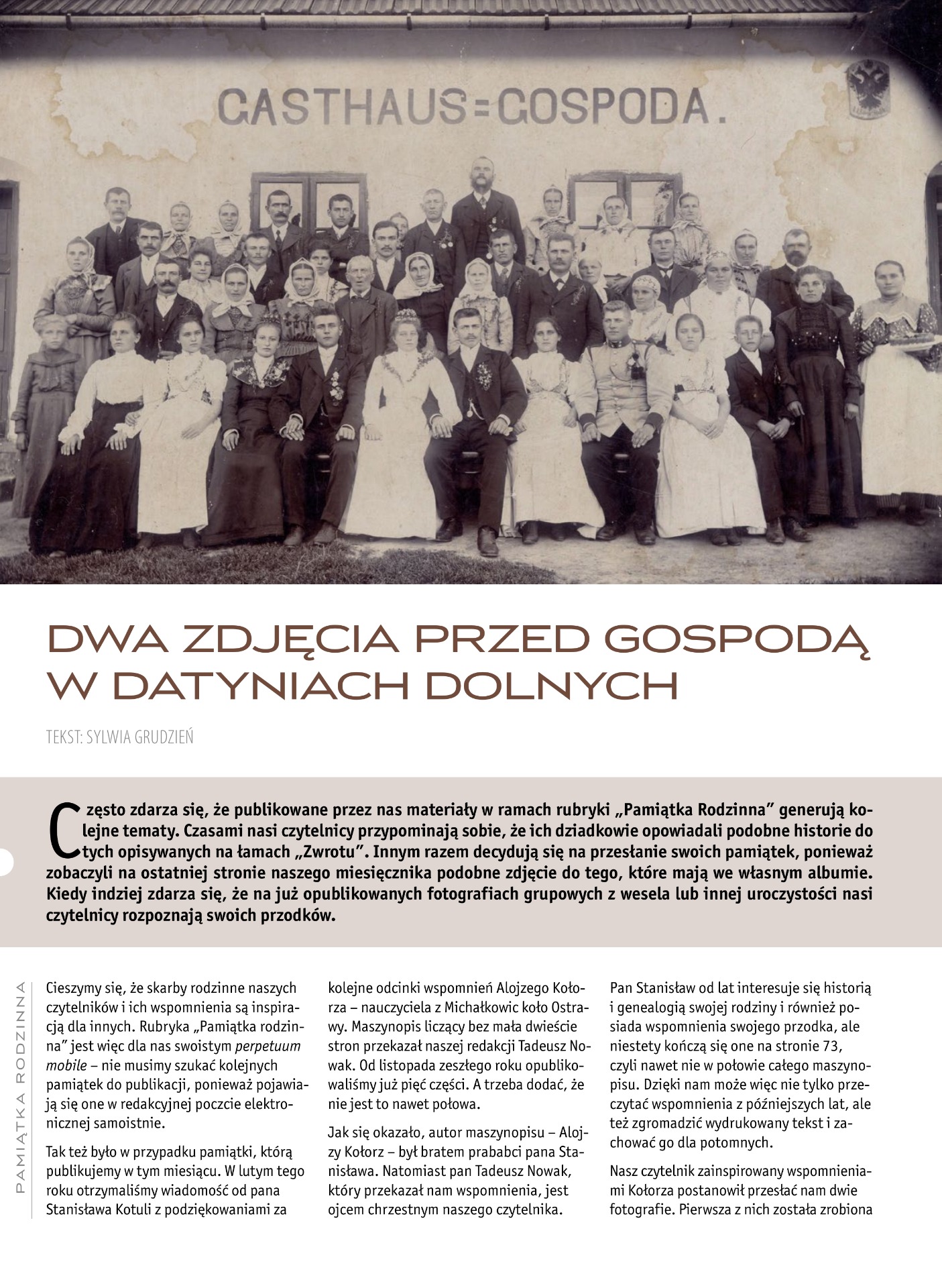 Reportáž z polského měsíčníku Zwrot nás provází po Dolních Datyních – nenápadné, ale zajímavé části Havířova s bohatou historií. Průvodcem je místní rodák Stanisław Kołorz, syn posledního předsedy místního PZKO, který sdílí osobní vzpomínky i zajímavosti z minulosti obce.