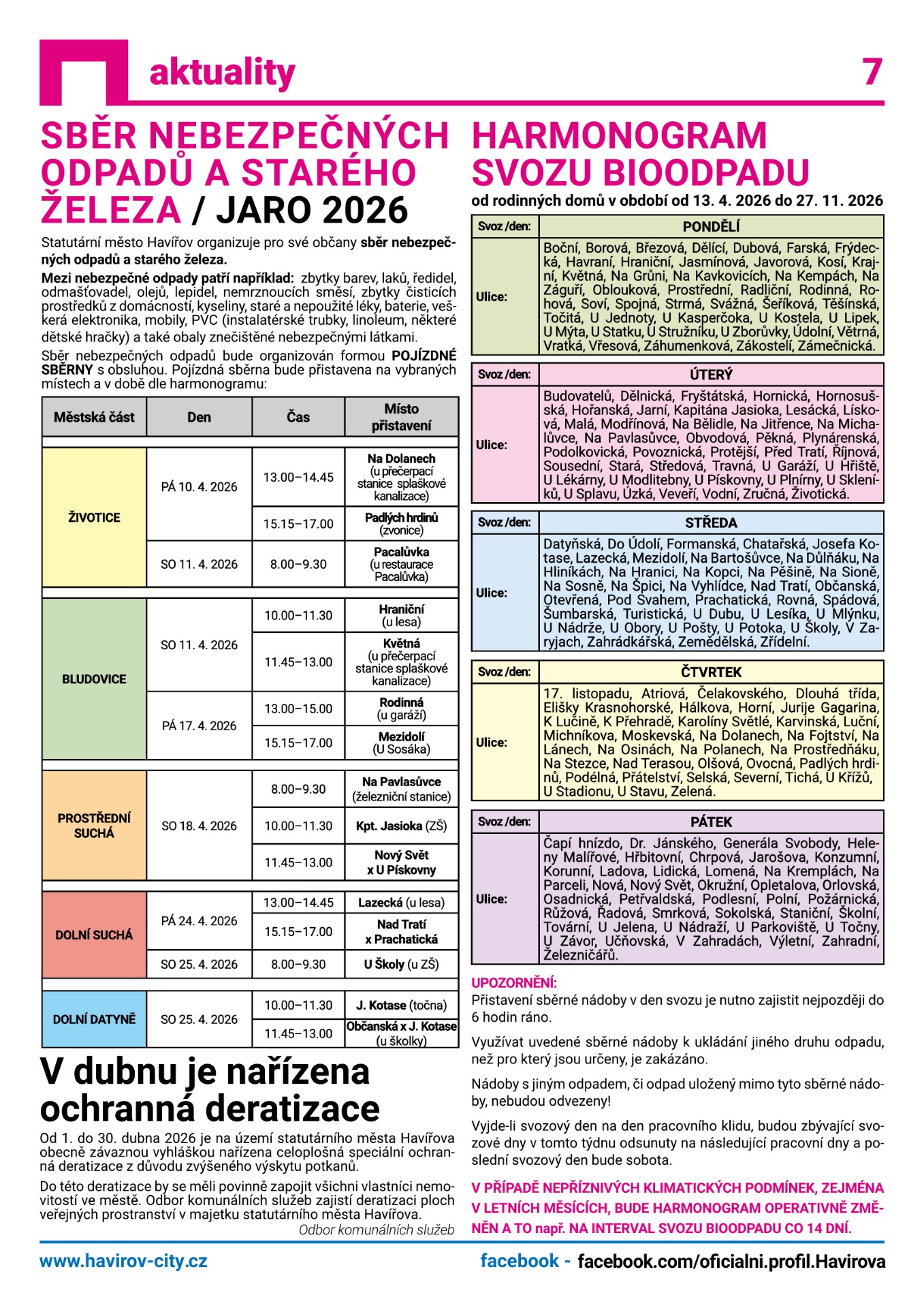 KALENDÁŘ SVOZ ODPADŮ 2026